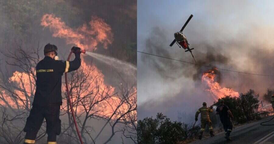 Σύμφωνα με την Πυροσβεστική, η φωτιά καίει χορτολιβαδική έκταση, ενώ για την κατάσβεσή της επιχειρούν 22 Πυροσβέστες με 8 οχήματα και σηκώθηκαν και τρία ελικόπτερα.