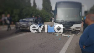 Σύμφωνα με το evima.gr, το λεωφορείο του ΚΤΕΛ εκτελούσε το δρομολόγιο των 13:00 μ.μ. από Κύμη για Αθήνα και ήταν γεμάτο με κόσμο την ώρα που έγινε η σφοδρή σύγκρουση με το αυτοκίνητο που οδηγούσε ο ηλικιωμένος άνδρας.