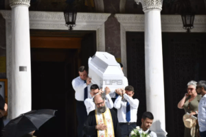 ‘Οπως θα δείτε και στις φωτογραφίες που ακολουθούν στη συνέχεια, το φέρετρο ήταν λευκό ενώ μοιράστηκαν και μπουμπουνιέρες, καθώς η Τζίνα Ντρούλις ήταν ανύπαντρη.