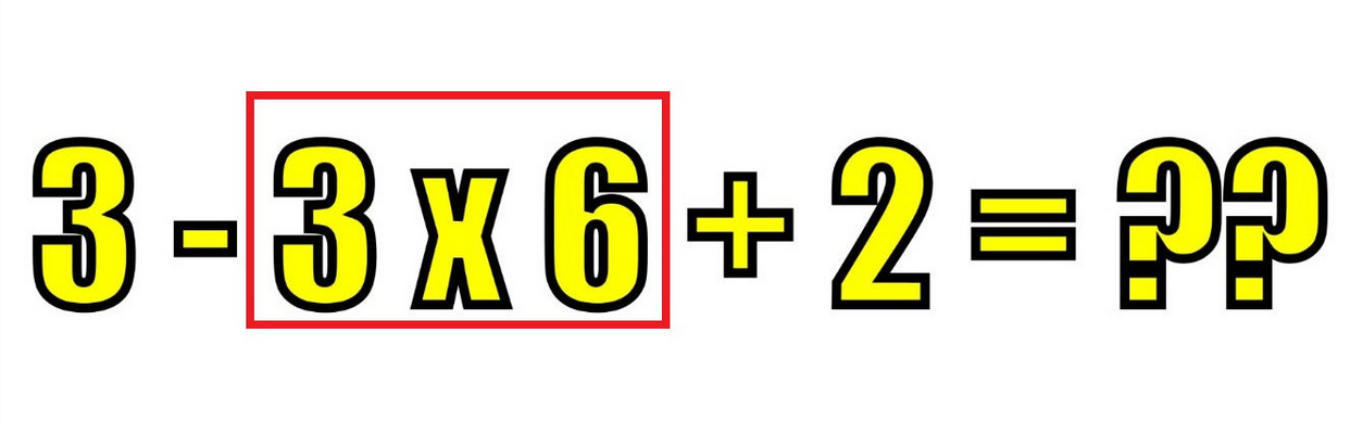 Εάν κάνουμε όλες τις πράξεις με την σειρά, θα έχουμε: 3 – 3 = 0. Αν αυτό το πολλαπλασιάσουμε με το 6 παραμένει 0. Αν προσθέσουμε 2, το συνολικό αποτέλεσμα είναι 2. Σωστά;
