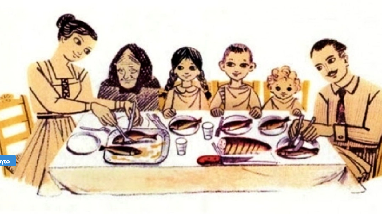 Επιπλέον κανείς δεν έχει ξεκινήσει το φαγητό γιατί ακόμη η μητέρα σερβίρει και θα ακολουθήσει και η προσευχή, ενώ τέλος το γεύμα περιλαμβάνει ψάρια και όχι κάποιο junk food.
