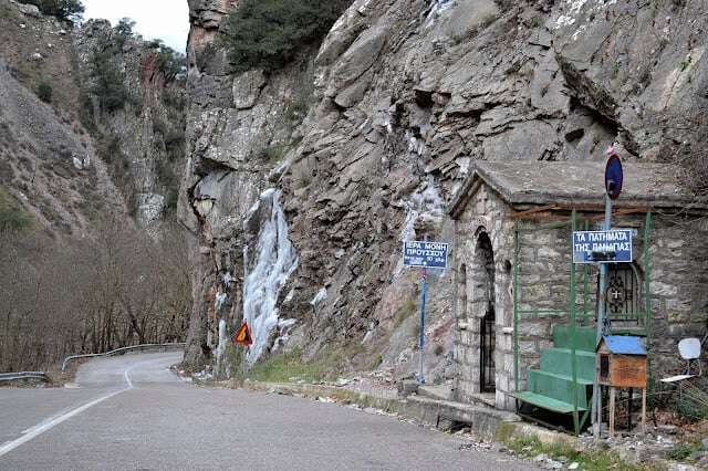 Τὰ «Πατήματα τῆς Παναγίας» ἀλλὰ καὶ την εικόνα της, συναντάει ὁ ἐπισκέπτης στὸ μονοπάτι ποὺ ὁδηγεῖ στὴ Μονὴ Προυσοὺ στὸ Καρπενήσι.