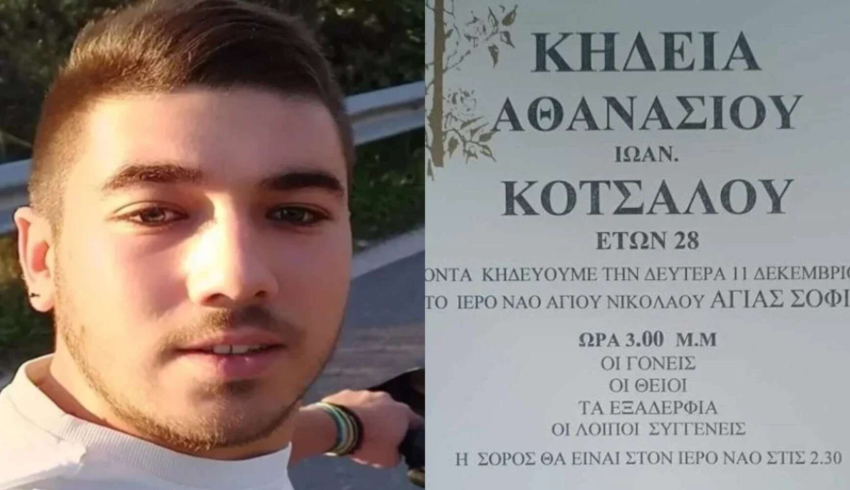 Το τελευταίο αντίο στον 29χρονο θα πουν αύριο, Δευτέρα 11 Δεκεμβρίου, συγγενείς, φίλοι και συγχωριανοί στον Ιερό Ναό Αγίου Νικολάου Αγίας Σοφίας στις 03:00 μ.μ.