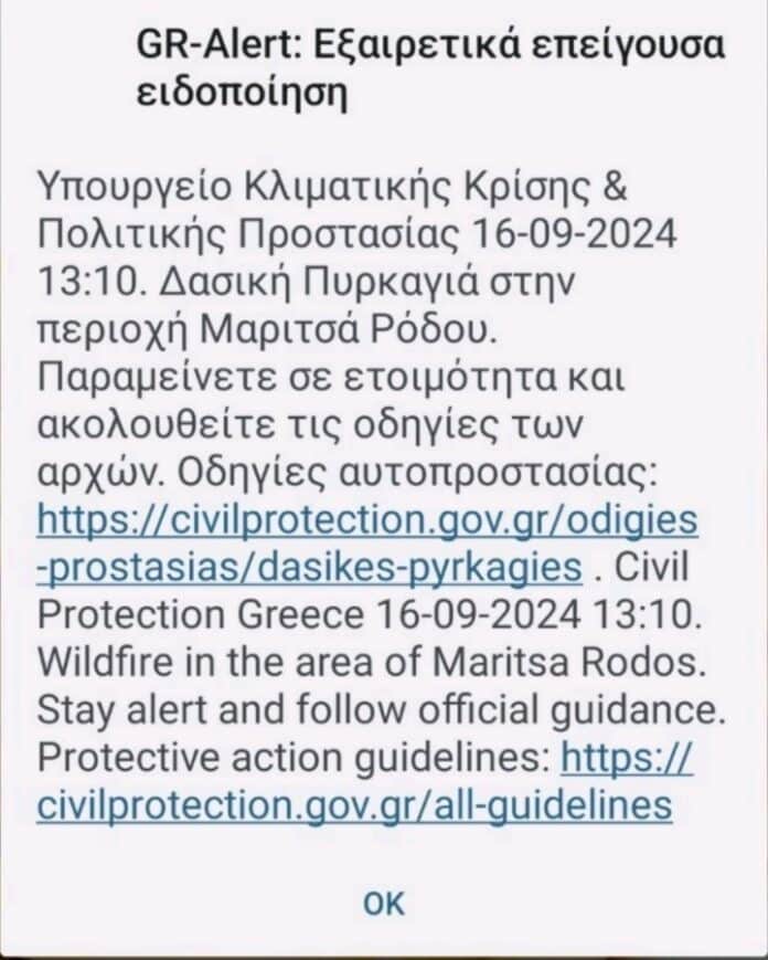 Έκτακτο μήνυμα – ειδοποίηση απέστειλε σε χιλιάδες κατοίκους του νησιού μας πριν από λίγο η Διευθυνση Πολιτικής Προστασίας εξαιτίας της επικίνδυνης φωτιάς που ξέσπασε στην περιοχή των Μαριτσών.