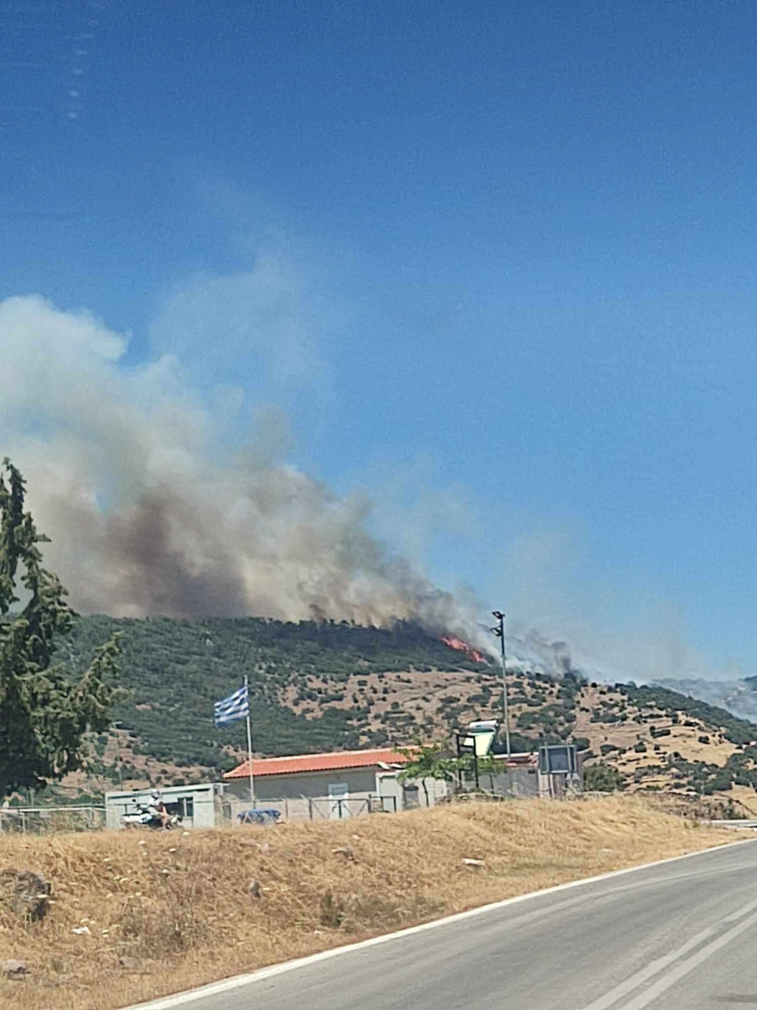 Η φωτιά καίει δάσος της περιοχής. Στην περιοχή πνέουν δυνατοί άνεμοι.