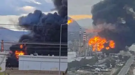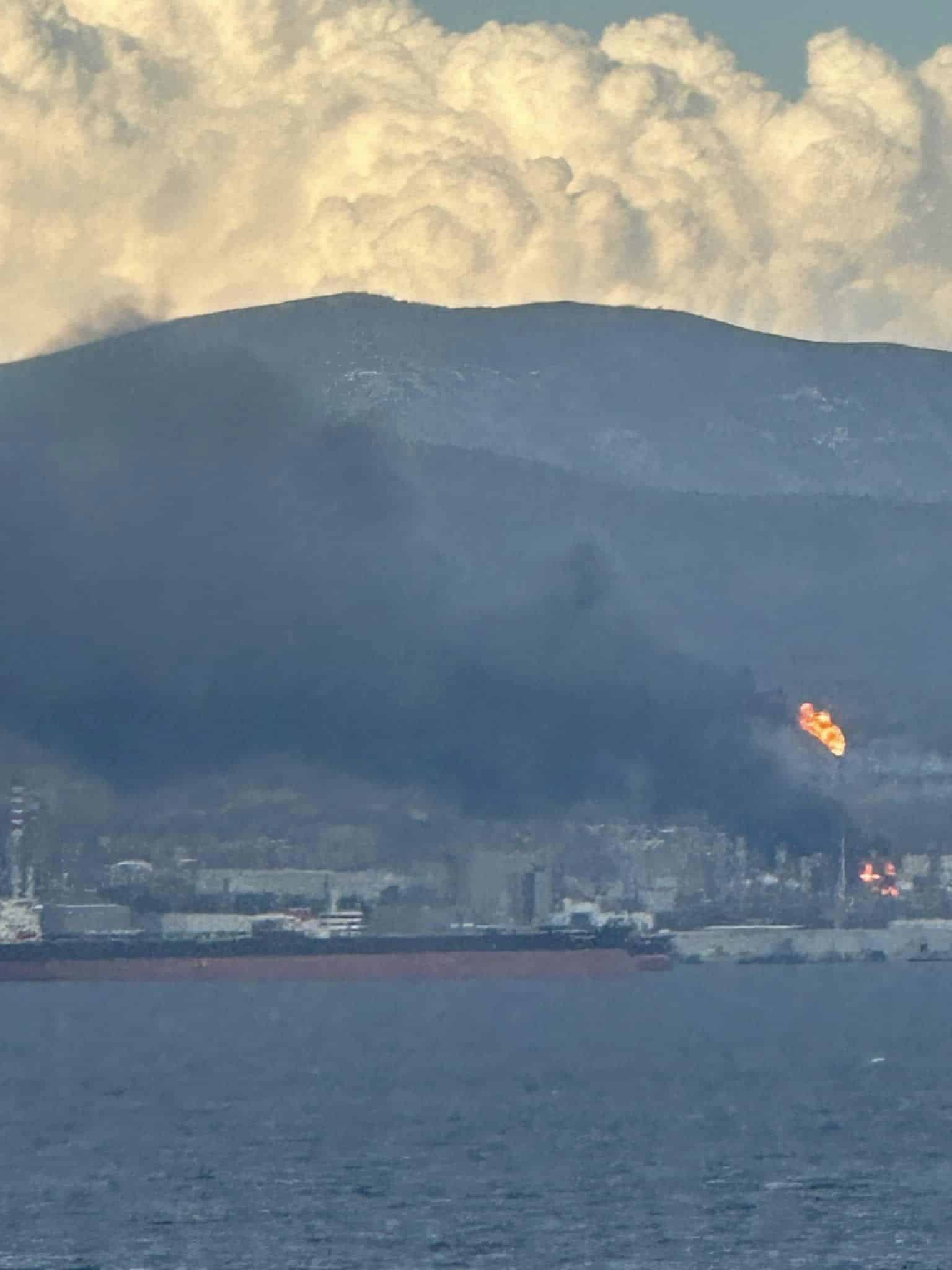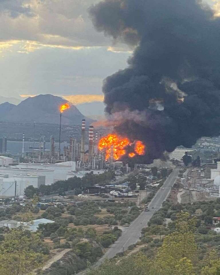 Παράλληλα επιχειρούν πυροσβεστικά των διυλιστηρίων και οι δυνάμεις του ΠΣ συνδράμουν.