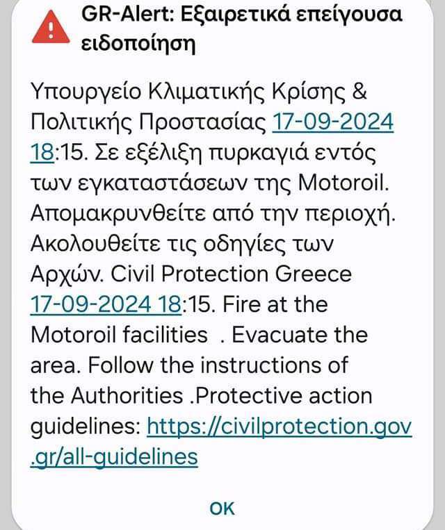 Λόγω της επικίνδυνης κατάστασης ενεργοποιήθηκε το 112 καλώντας όσους βρίσκονται στην περιοχή να απομακρυνθούν ενώ η αστυνομία έχει κλείσει τους γύρω δρόμους σε μεγάλη ακτίνα αποκλείοντας την προσέγγιση στον χώρο των διυλιστηρίων.
