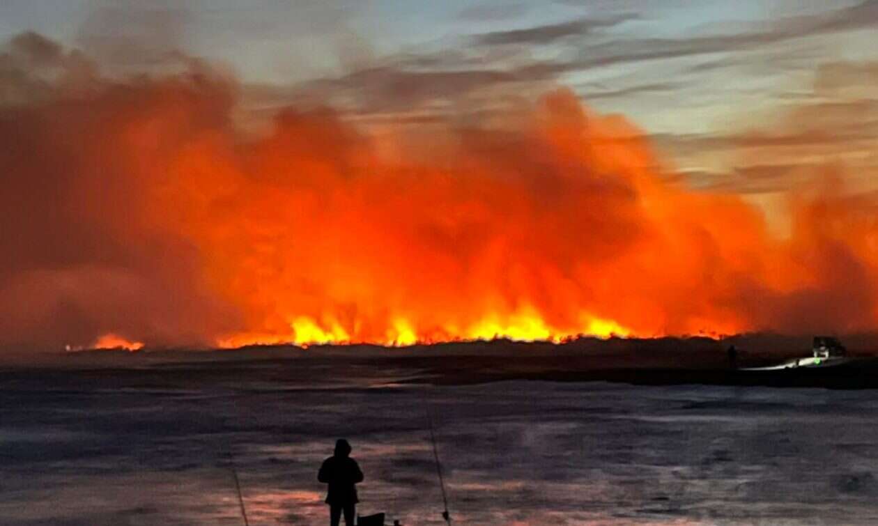 Η πυρκαγιά καίει από το μεσημέρι της Δευτέρας στην παραλία Μοναστηρακίου Νέστου, με τις φλόγες να είναι ορατές από χιλιόμετρα μακριά.