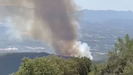 Η φωτιά στην περιοχή Κακουραίικα στην Αρκαδία καίει σε δασική έκταση