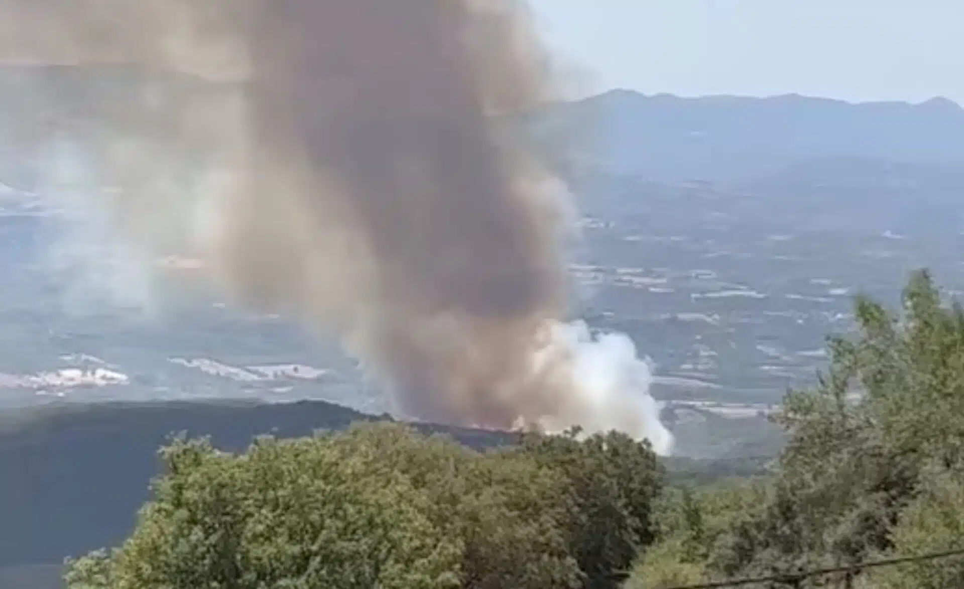 Η φωτιά καίει, σύμφωνα με την Πυροσβεστική, σε μεγάλο υψόμετρο, και ισχυρές δυνάμεις μάχονται για την κατάσβεσή της.