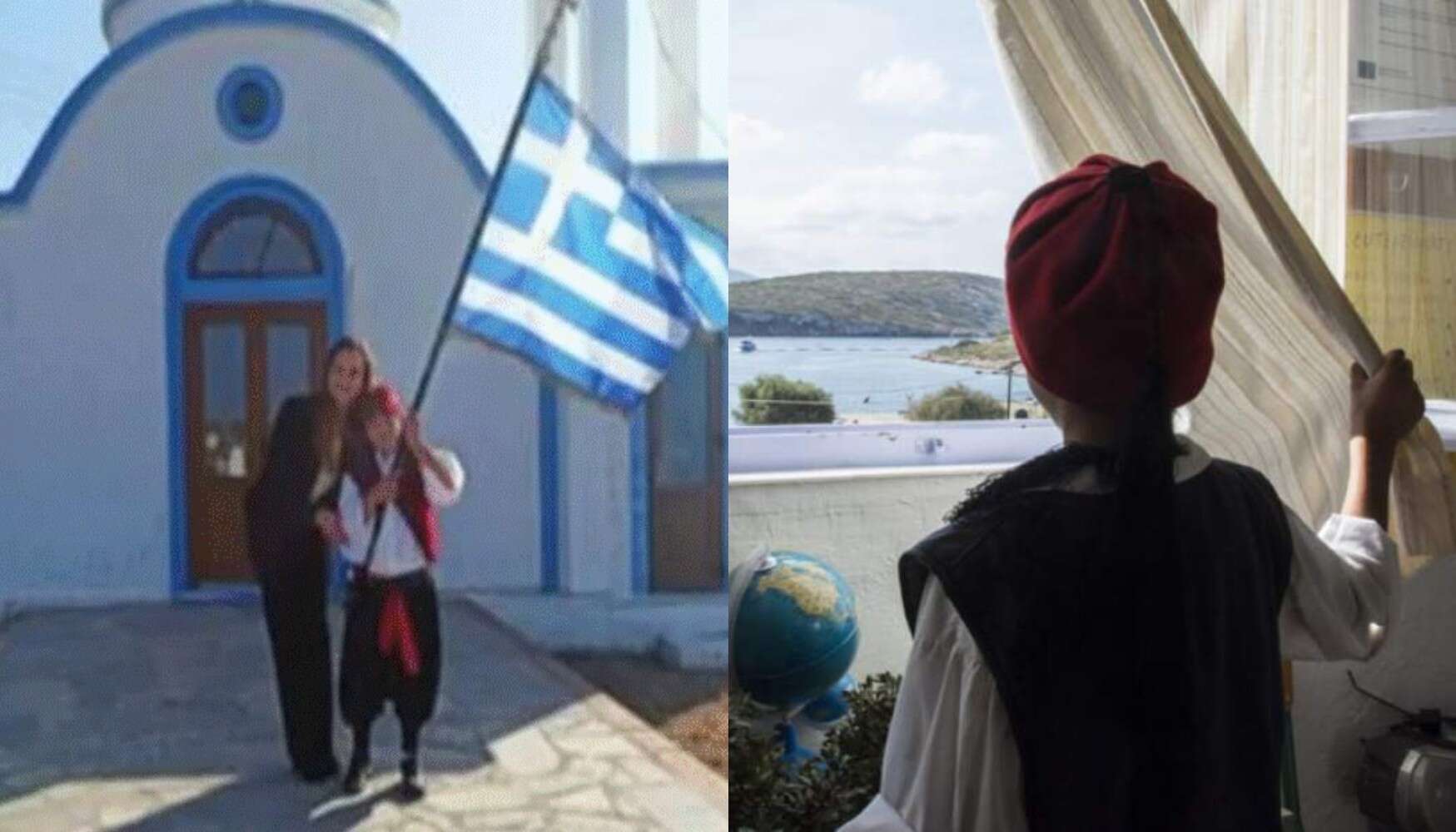 Μόνος του παρέλασε στο μικρό νησί των Δωδεκανήσων, τους Αρκιούς, ένας μαθητής για την Εθνική Επέτειο της 25ης Μαρτίου.