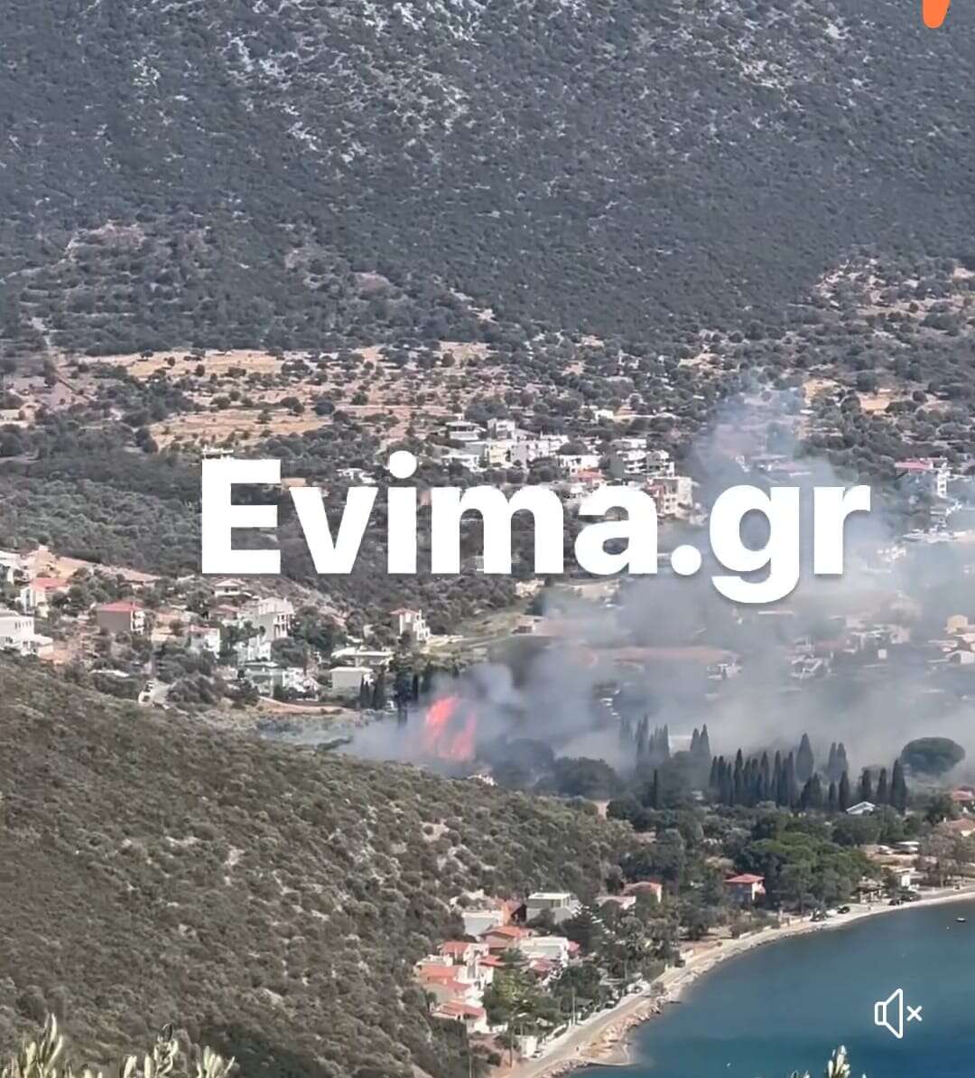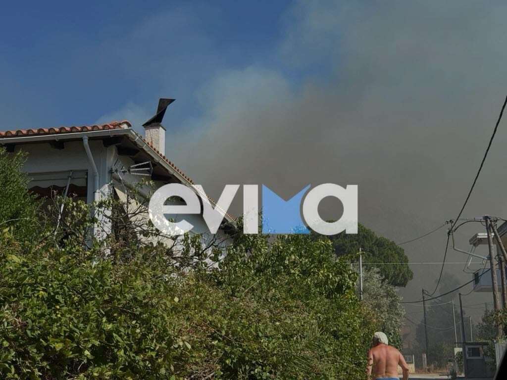 Σύμφωνα με μαρτυρίες κατοίκων της περιοχής στο evima.gr η φωτιά μπαίνει μέσα στα σπίτια.