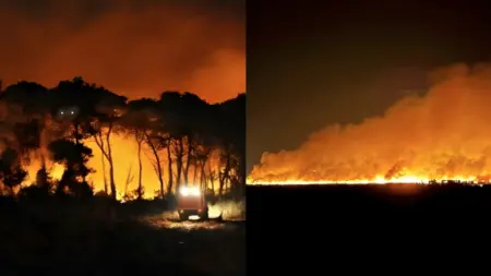 Μεγάλη φωτιά στο προστατευόμενο δάσος της Στροφυλιάς
