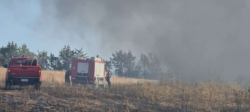 Η Πυροσβεστική Υπηρεσία ενημερώθηκε για το συμβάν στις 17:30 και επί τόπου έσπευσαν επτά οχήματα και 15 πυροσβέστες, οι οποίοι έθεσαν άμεσα υπό μερικό έλεγχο τις φλόγες που έκαιγαν ξηρά χόρτα και καλαμιές.