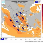 Σημειώνεται ότι η αναφορά γίνεται στις μέσες εντάσεις ανέμου και ότι κατά τόπους αναμένονται ριπές άνω των 80κm/h. Αισθητή θα είναι η πτώση των μεγίστων θερμοκρασιών σε σχέση με την Παρασκευή 17/11.