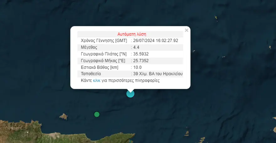 Σεισμός: 4,4 Ρίχτερ στο Ηράκλειο Κρήτης