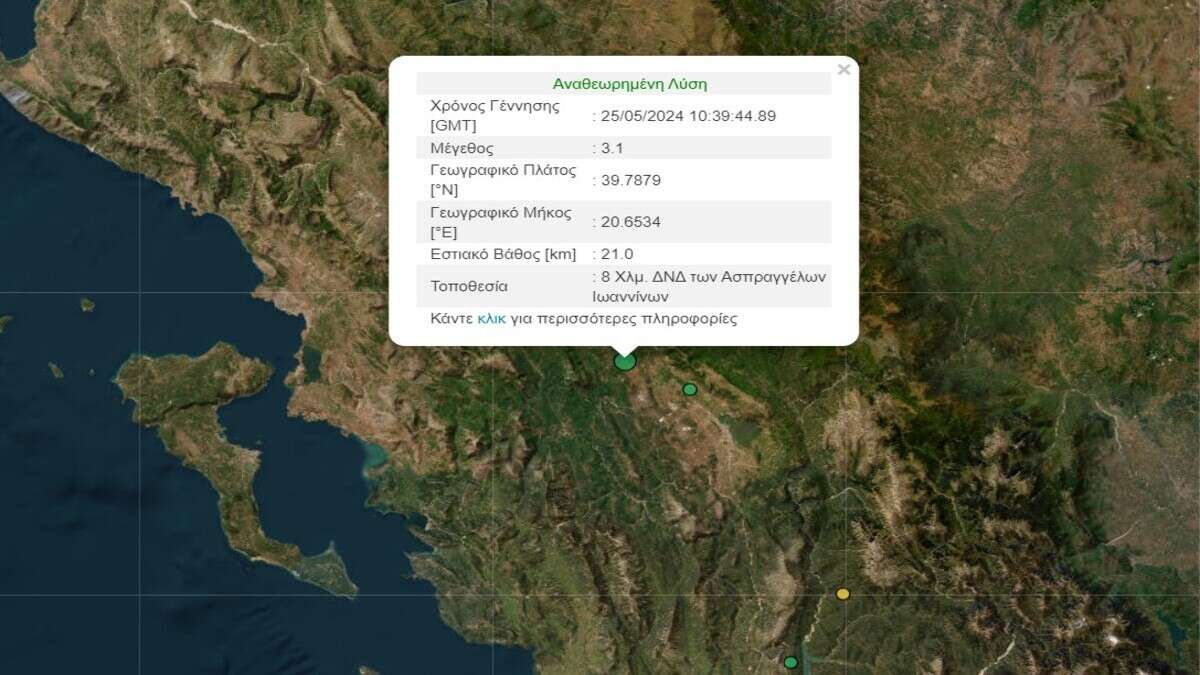 Σεισμός 3 Ρίχτερ σημειώθηκε λίγο πριν τις 2 το μεσημέρι του Σαββάτου (25/5) στο Καλπάκι Ιωαννίνων.