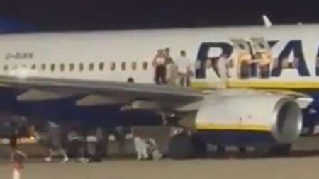 Dramatic moment Ryanair passengers use emergency slides after plane catches fire https://t.co/UCC60dgE3W pic.twitter.com/hhukZMXdpl