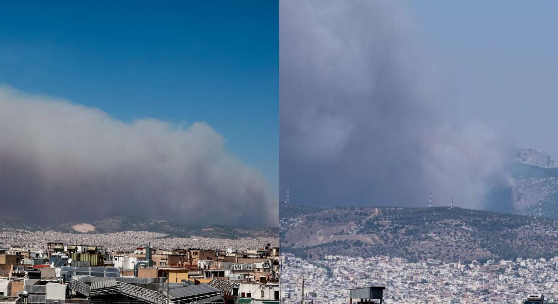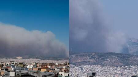 Το πέπλο καπνού έχει σκεπάσει τον αττικό ουρανό δημιουργώντας αποπνικτική ατμόσφαιρα, ενώ παράλληλα υπάρχει ειδική οδηγία για τα άτομα με αναπνευστικά προβλήματα.