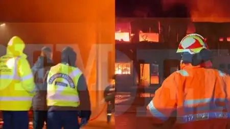 Η φωτιά ξέσπασε στις αποθήκες, μεταλλικής κατασκευής, δίπλα στο κεντρικό εργοστάσιο και καλύπτει μεγάλη έκταση. Οι πυροσβέστες κάνουν προσπάθειες να μην επεκταθεί και στον κύριο χώρο του εργοστασίου. Δεν υπάρχουν αναφορές για εγκλωβισμένους.