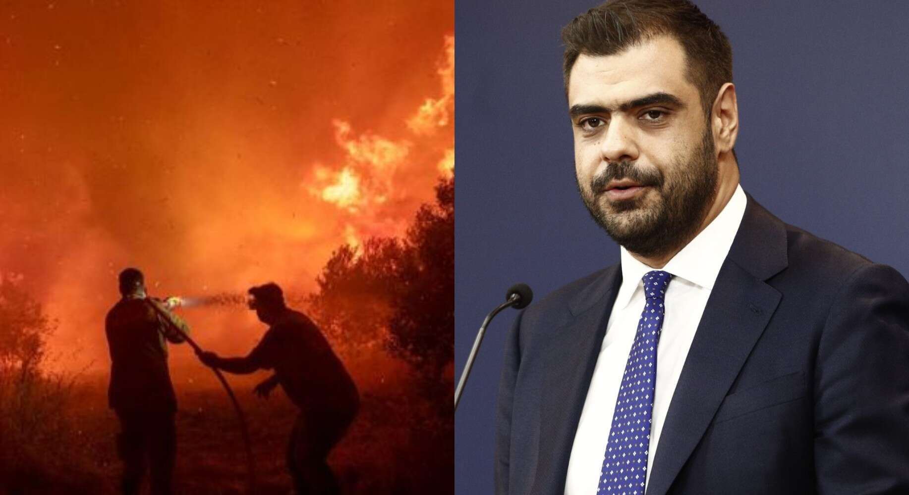 Όπως είπε ο κυβερνητικός εκπρόσωπος «όλες οι δυνάμεις βρίσκονται στην πρώτη γραμμή, δίνοντας τη μάχη με αυταπάρνηση, κατά τη διάρκεια μιας αντιπυρικής περιόδου στην οποία έχει ξεπεραστεί κάθε προηγούμενο στις ημέρες που η χώρα μας βρίσκεται σε ακραίο κίνδυνο (επίπεδο 5) εκδήλωσης πυρκαγιών». Ο κ. Μαρινάκης ξεκαθάρισε ότι δεν θα εμπλακεί σε πολιτική αντιπαράθεση σημειώνοντας ότι «την ώρα της μάχης, δεν υπάρχει χώρος για στείρα αντιπαράθεση και κομματικό ακτιβισμό. Θα έρθει η ώρα του απολογισμού».