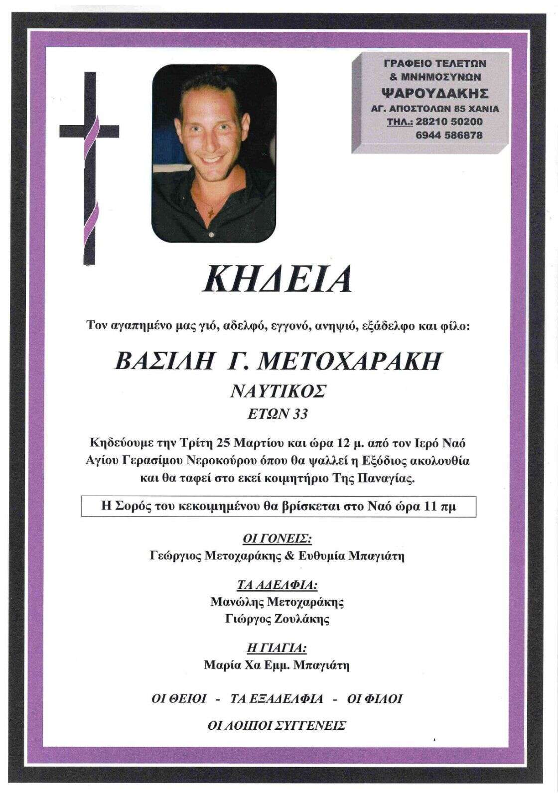 Οι συγγενείς και οι φίλοι του, μουδιασμένοι από την είδηση του θανάτου του αγαπημένου τους, θα τον αποχαιρετήσουν το πρωί της Τρίτης 25 Μαρτίου στον Ιερό Ναό Αγίου Γερασίμου, στα Νεροκούρου, ενώ στη συνέχεια ο 33χρονος θα ταφεί στο κοιμητήριο της Παναγίας.