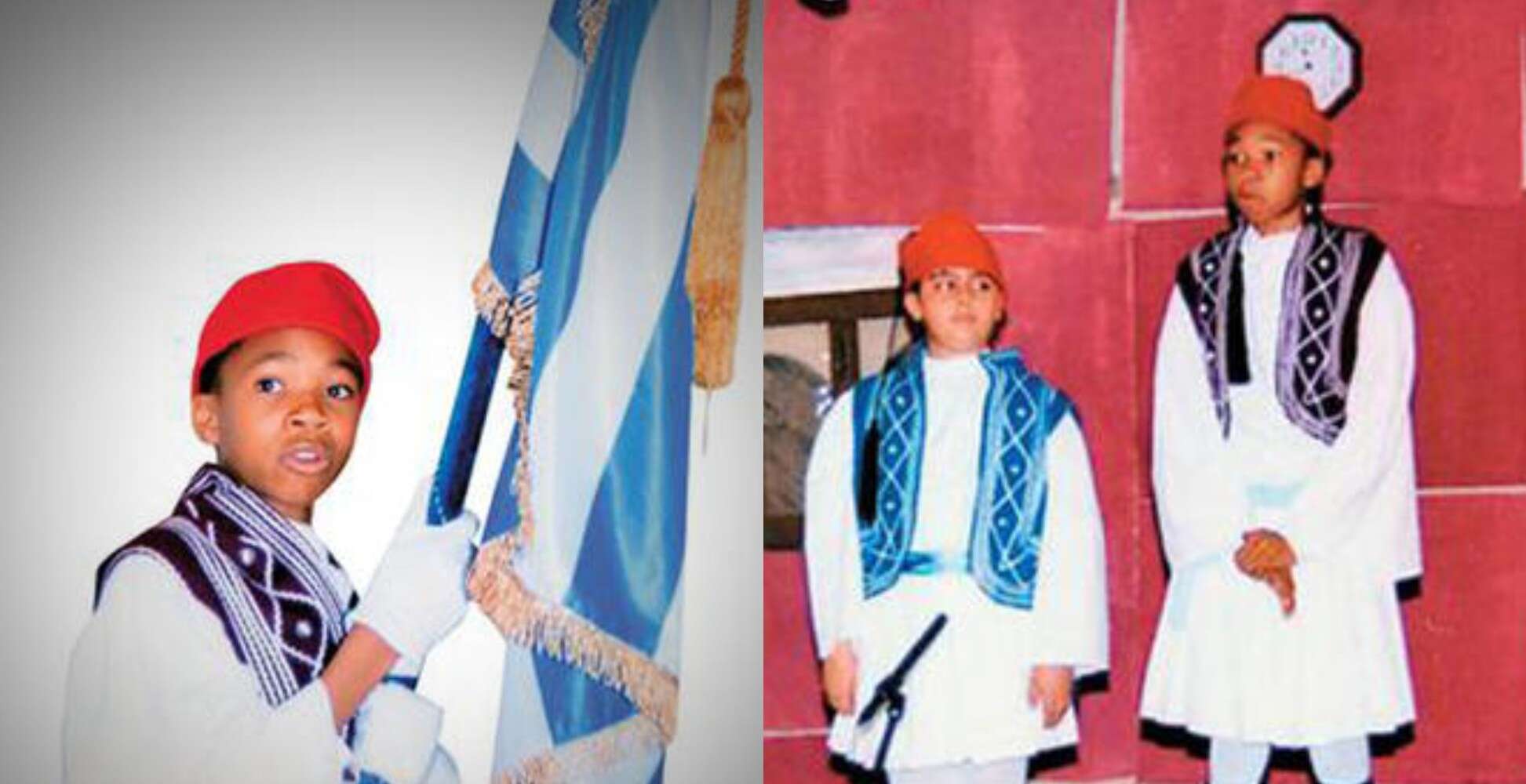 Ο 2 φορές MVP του NBA σε παιδική ηλικία ντυμένος τσολιαδάκι να κρατάει με υπερηφάνεια την ελληνική σημαία.