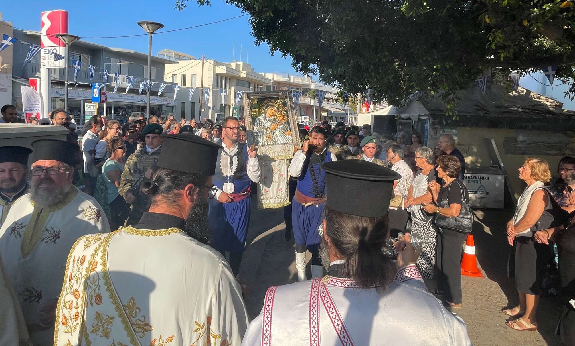Ας είναι δοξασμένο το όνομα της Υπεραγίας Θεοτόκου», κατέληξε ο Σεβ. Μητροπολίτης Κισάμου και Σελίνου κ. Αμφιλόχιος, ευχαριστώντας θερμά την δωρήτρια κα Θεοδοσιάδου, ευχόμενος στους χιλιάδες που προσήλθαν να προσκυνήσουν την Ιερά και Θαυματουργό Εικόνα της Παναγίας της «Γιάτρισσας», «Η Παναγία να γιατρέψει τους πόνους και τα βάσανα όλων μας, αφουγκραζόμενη τους αλαλήτους στεναγμούς των καρδιών μας».