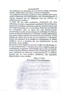Θεωρούμε ότι ήταν ακραίο όλο αυτό που συνέβη και αισθανθήκαμε ότι δεν μας αντιπροσωπεύει. Γνωρίζουμε ποιες είναι οι αρμόδιες αρχές για να αποταθούμε αν χρειαστεί. Αυτό που βγήκε προς τα έξω το τελευταίο 24ωρο ως κλίμα που επικρατεί στην εργασία μας, δεν ισχύει σε καμία περίπτωση και δηλώνουμε κατηγορηματικά ότι οι συνθήκες εργασίας μας, δεν είναι συνθήκες «μεσαίωνα» ούτε υφιστάμεθα «βασανιστήρια», όπως ειπώθηκε.