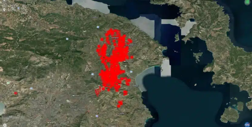 Η φωτογραφία της NASA που δείχνει τη φωτιά στην Αττική