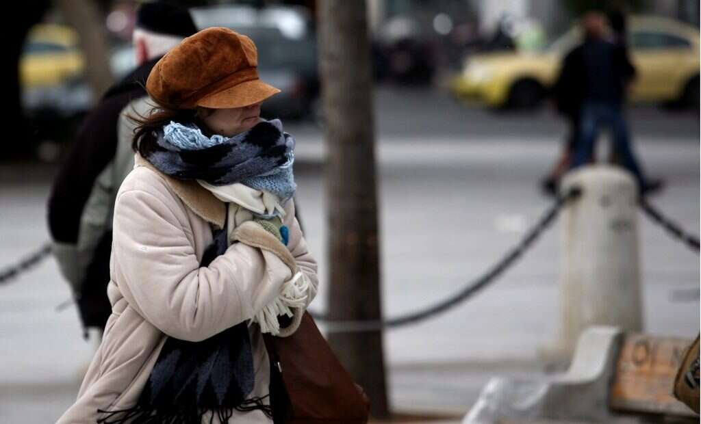 Μία πολίτης προσπαθεί να προστατευτεί από το κρύο στην Αθήνα,την Τρίτη 31 Ιανουαρίου 2012. Χαμηλές θερμοκρασίες παρατηρήθηκαν σχεδόν σε όλη την ελληνική επικράτεια ενώ ο απόπλους των πλοίων από τα λιμάνια έχει απαγορευτεί λόγω των ισχυρών ανέμων. ΑΠΕ-ΜΠΕ/ΑΠΕ-ΜΠΕ/ΑΛΚΗΣ ΚΩΝΣΤΑΝΤΙΝΙΔΗΣ