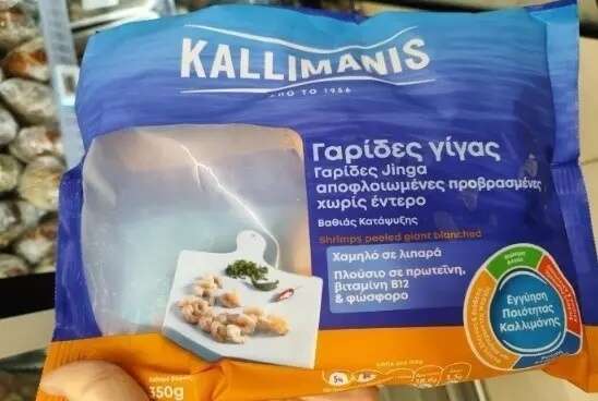 Πιο συγκεκριμένα, ο ΕΦΕΤ, κατά τη διενέργεια ελέγχων στο πλαίσιο του Προγράμματος «Επίσημος Έλεγχος Μικροβιολογικών Κριτηρίων Ασφάλειας Τροφίμων» έτους 2024, προέβη σε δειγματοληψία κατεψυγμένου προϊόντος με τα στοιχεία: Γαρίδες γίγας ΓΙΓΑΣ (JINGA) αποφλοιωμένες προβρασμένες χωρίς έντερο βαθιάς κατάψυξης Kallimanis (Καλλιμάνης).