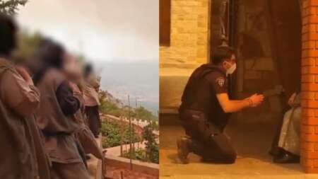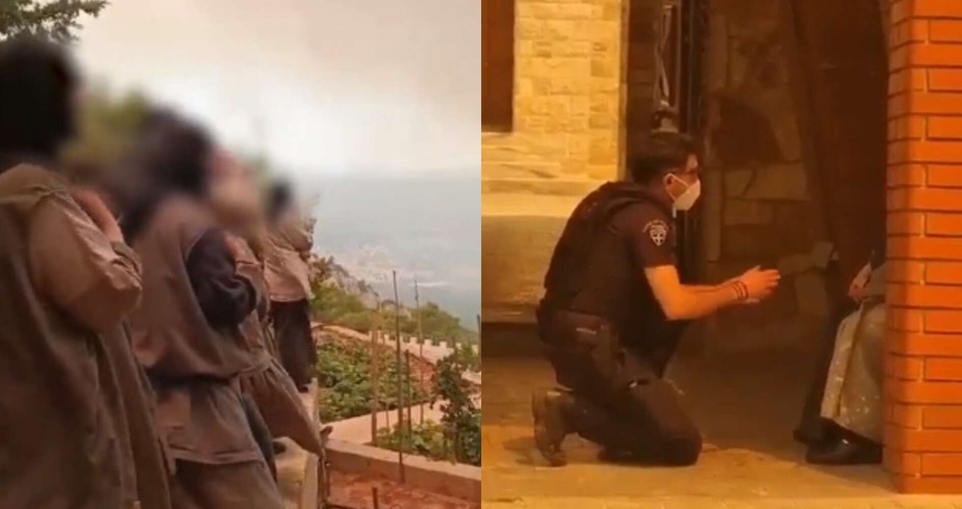 Συγκινητικό βίντεο από την προσπάθεια των αστυνομικών να πείσουν τις μοναχές να φύγουν από το μοναστήρι που έχει κυκλωθεί από τις φλόγες.