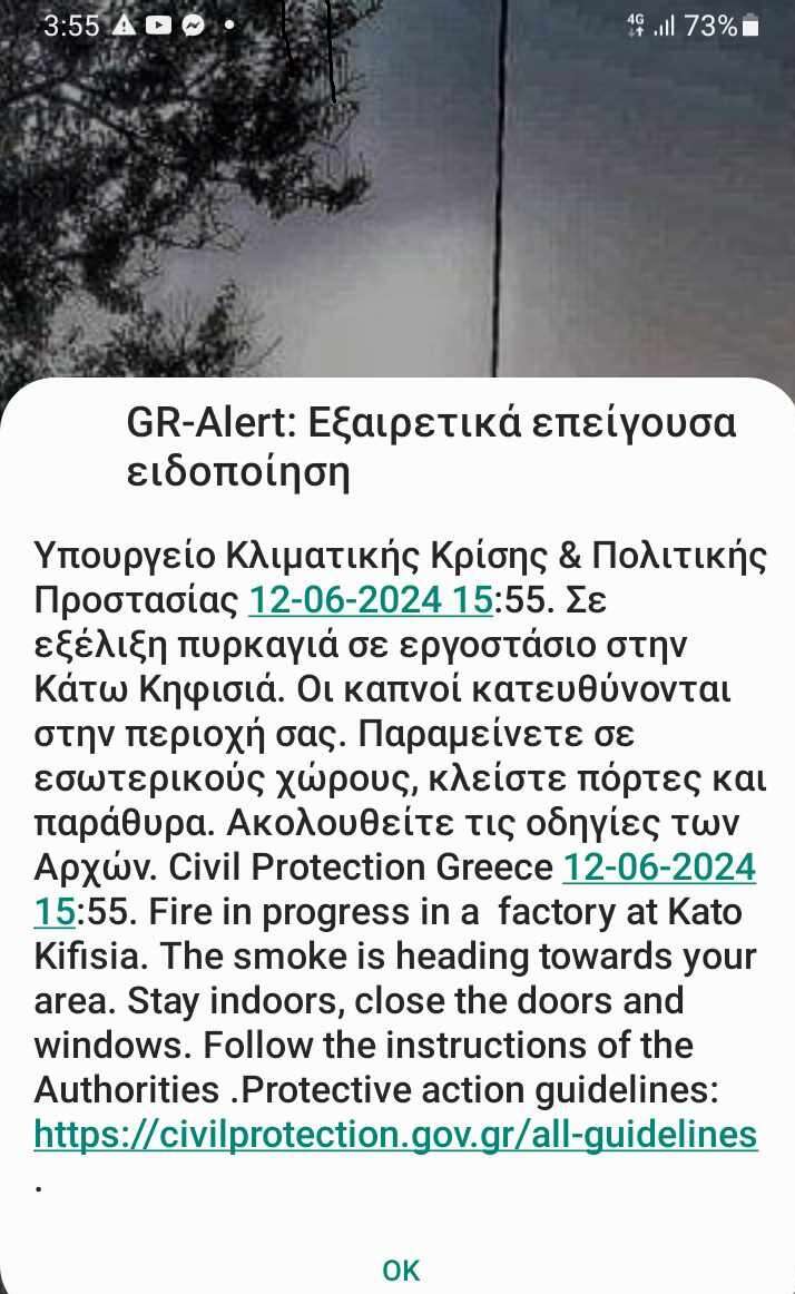 «Παραμείνετε σε εσωτερικούς χώρους, κλείστε πόρτες και παράθυρα. Ακολουθείτε τις οδηγίες των Αρχών» είναι το μήνυμα του 112. Το ΕΚΑΒ στέλνει στο εργοστάσιο δυο ασθενοφόρα για πιθανόν εγκλωβισμένους.