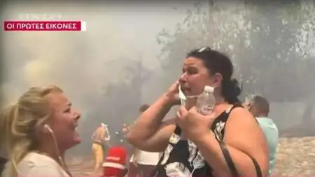 «Είναι εγκλωβισμένη μέσα, δεν μπορεί να περάσει από τη φωτιά», είπε η γυναίκα στην ρεπόρτερ και εκείνη την ώρα χτύπησε το τηλέφωνό της. «Πού είσαι, Κατερίνα; Έλα κάτω. Κατερίνα, θα με αποτελειώσεις…», έλεγε στο πρόσωπο που αναζητούσε και ξέσπασε σε κλάματα, με τη δημοσιογράφο να προσπαθεί να την καθησυχάσει.