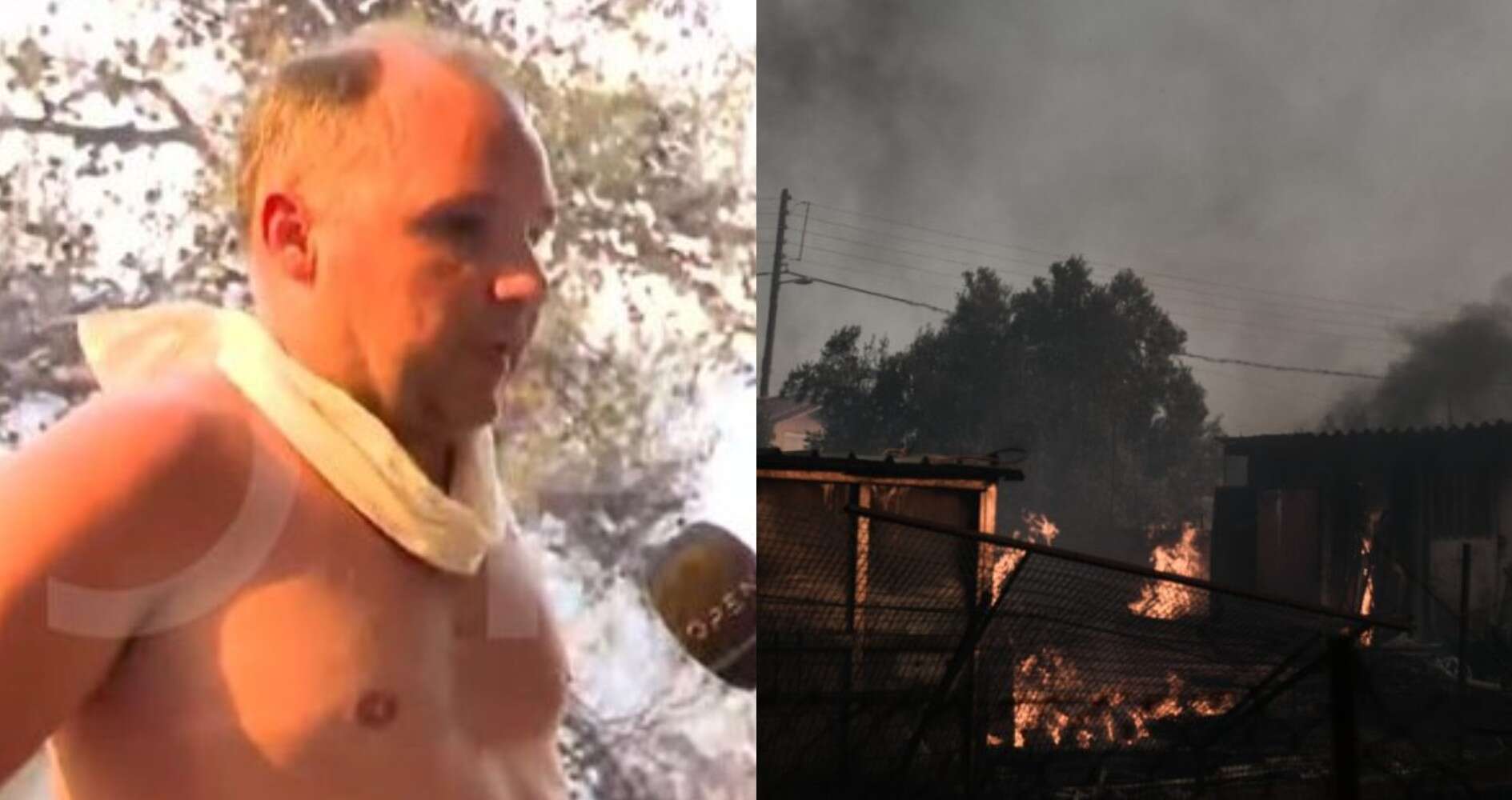 Μιλώντας στην κάμερα του έκτακτου δελτίου ειδήσεων του OPEN και τον ρεπόρτερ Γιάννη Ρήγο, ο άνδρας που μένει στην Μάνδρα είδε το σπίτι του να καίγεται στην πυρκαγιά που ξεκίνησε από τα Δερβενοχώρια. «Μείναμε μέχρι τις πρώτες πρωινές ώρες, είδαμε τον αέρα να δυναμώνει. Προσπαθούσαμε να μαζέψουμε τα παιδιά για να φύγουμε, η φωτιά πλησίαζε πάρα πολύ γρήγορα και ήταν πολύ δύσκολο», ανέφερε αρχικά ο ίδιος.
