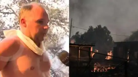 «Η φωτιά πέρασε από τα πεύκα στη σκεπή του σπιτιού, και από τη σκεπή μέσα στο σπίτι. Βρέχαμε το σπίτι από τις 13:00 μέχρι την τελευταία στιγμή. Είχαμε ενημερώσει τους πυροσβέστες, αλλά είναι πάρα πολλές οι φωτιές και πάρα πολύ δύσκολο», είπε ο άντρας για τον τρόπο με τον οποίο κάηκε το σπίτι του.
