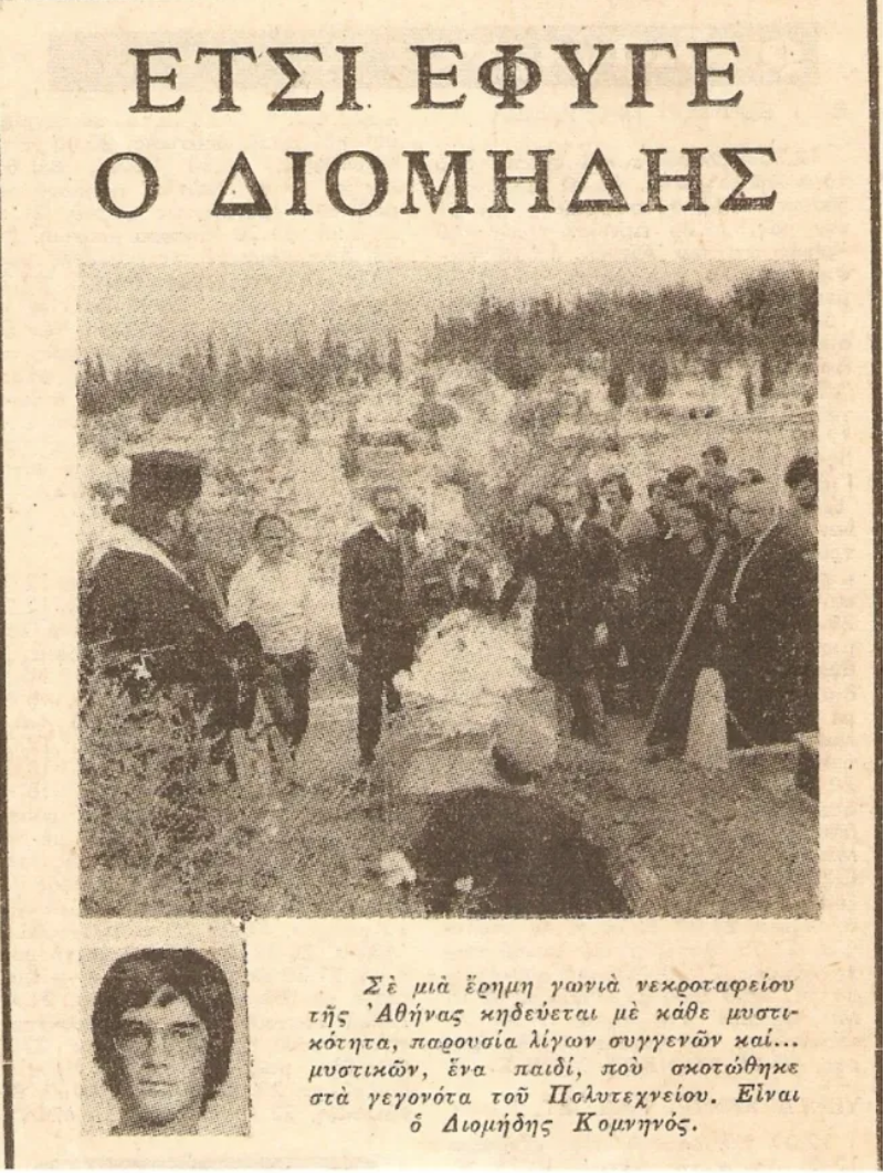 «Μεταξύ φονευθέντων», έλεγε η επίσημη ανακοίνωση της χούντας, «είναι και ο Διομήδης Κομνηνός, ετών 17 με βεβαρημένο παρελθόν»….