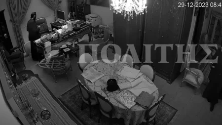 Αίσθηση προκαλεί βίντεο-ντοκουμέντο από το κλειστό κύκλωμα παρακολούθησης της Μονής Οσίου Αββακούμ στο Φτερικούδι στην Κύπρο, στο οποίο δύο μοναχοί φαίνεται να τοποθετούν «μύρο» στον σταυρό χρησιμοποιώντας ένα μπιτόνι γεμάτο με υγρό.
