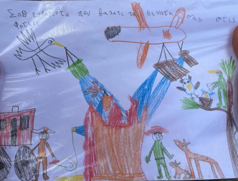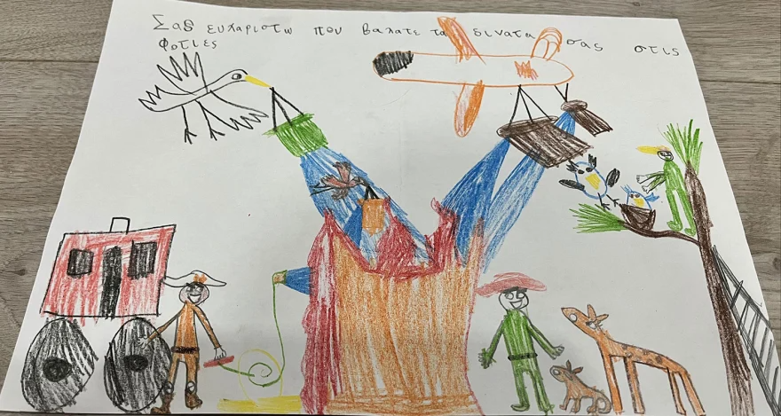 Το κοριτσάκι μαζί με τη μητέρα του πλησίασε τον αναπληρωτή επικεφαλής της αποστολής, Jozef Húšek την ώρα που εφοδίαζαν ένα πυροσβεστικό όχημα με νερό και του προσέφερε τη ζωγραφιά εκφράζοντας την ευγνωμοσύνη της για τη συνδρομή τους στην αντιμετώπιση των δασικών πυρκαγιών που έπληξαν τη Ρόδο.