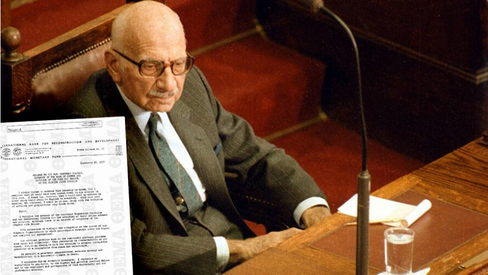 Ήταν μια σαφής πολιτική κίνηση: να στρέψει το ενδιαφέρον της διεθνούς κοινής γνώμης στη βαθιά λαβωμένη από τον εμφύλιο πόλεμο, Ελλάδα. Οι λόγοι εκφωνήθηκαν στο πλαίσιο των ετήσιων συναντήσεων της Παγκόσμιας Τράπεζας.