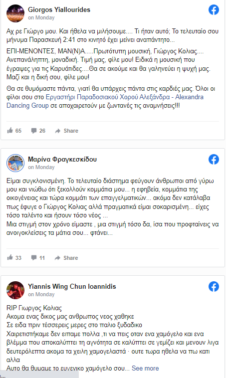 Η απουσία του αφήνει ένα κενό που είναι αδύνατο να καλυφθεί, αναλογιζόμαστε όμως τις πολύτιμες στιγμές που μοιραστήκαμε και μας πλημμυρίζει η ευγνωμοσύνη για την τέχνη που δημιουργήσαμε από κοινού. Θα θυμόμαστε πάντα τον αγαπημένο μας Γιώργο Κολιά ως πηγή έμπνευσης και ενθάρρυνσης, ένα γνήσιο καλλιτέχνη και ξεχωριστό άνθρωπο. Αιωνία του η μνήμη».
