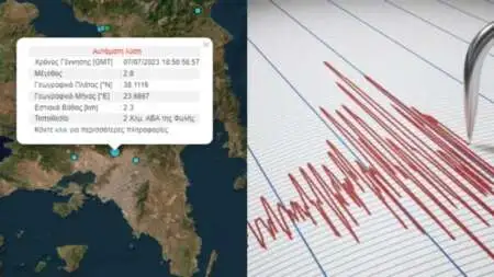 Σεισμός μεγέθους 2,9 της κλίμακας Ρίχτερ σημειώθηκε το βράδυ της Παρασκευής 7/7 στην Αττική.
