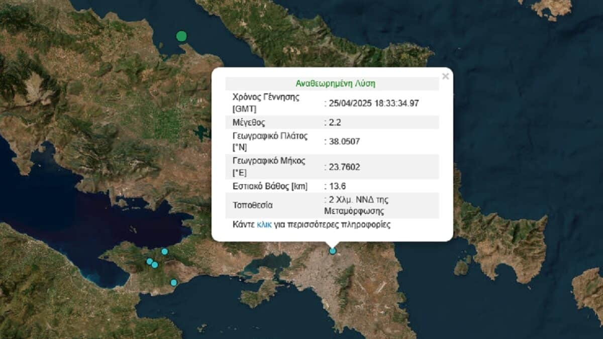 Ο σεισμός σημειώθηκε 2 χλμ νοτιοδυτικά της Μεταμόρφωσης και εστιακό βάθος ήταν 13,6 χλμ.