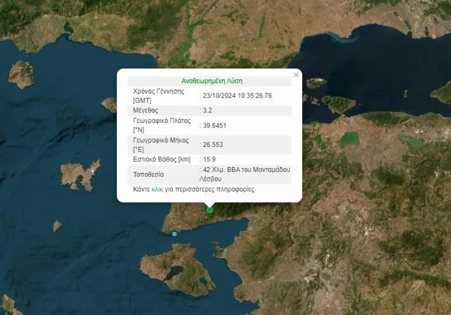 Σεισμός 3,2 Ρίχτερ ταρακούνησε την Μυτιλήνη το μεσημέρι της Τετάρτης.
