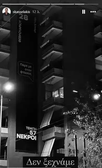 «Το πανό αυτό είναι μια χυδαία, κομματική εκμετάλλευση. Υποτίθεται ότι ο Κασσελάκης ήρθε γιατί τον χαιρέτισαν κάτι μεγαλοαστούλιδες για να αλλάξουν το πολιτικό σύστημα να το κάνουν πιο υγιές. Αυτό συνιστά χυδαία εκμετάλλευση νεκρών. Δεν είδα κανένα κόμμα να απλώνει στα γραφεία πανό. Άλλο πράγμα η συμμετοχή στην πορεία και άλλο κρεμάω πανό στα γραφεία και η κονκάρδα. Την ώρα που ανταλλάζουν φιλάκια ο Κασσελάκης με τον Γεροβασίλη διακρίνεται η κονκάρδα “57 νεκροί”», είπε ο Άρης Πορτοσάλτε.