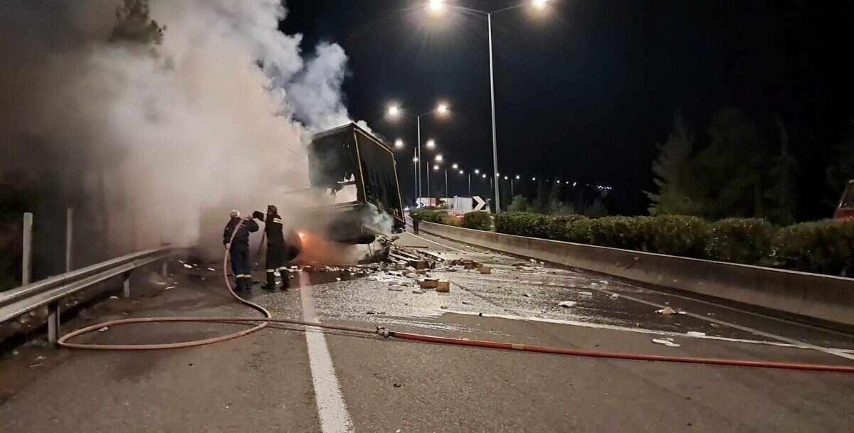 Τροχαίο με νταλίκα στην εθνική οδό – Κάηκε ολοσχερώς στο ύψος του Μαρτίνου
