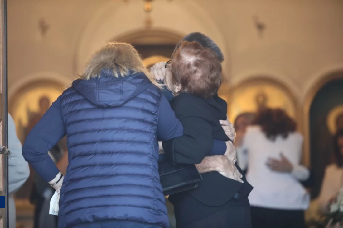 Κηδεία Καίτης Κωνσταντίνου: «Σπάραξαν» όλοι με το στεφάνι που της έστειλαν οι φίλες της
