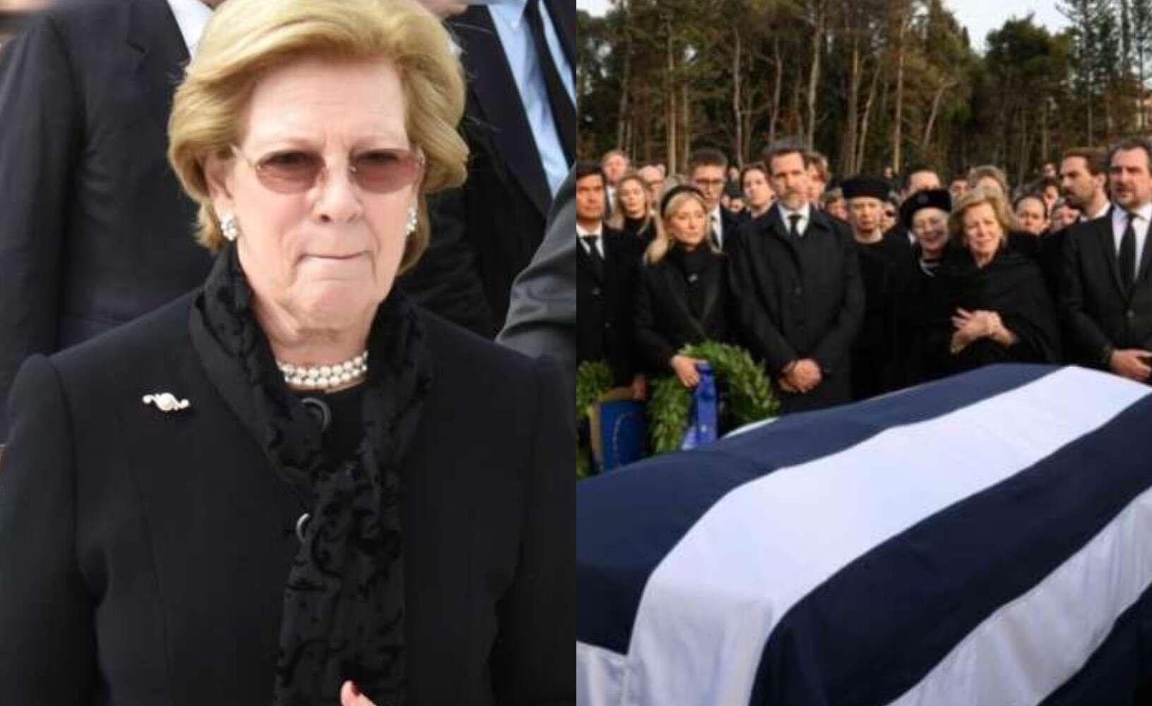 Η Άννα Μαρία, που ήταν ντυμένη με μαύρο ταγιέρ και πέρλες στον λαιμό και ο γιος της, στάθηκαν πλάι στο φέρετρο καθ’ όλη τη διάρκεια της τελετής με τη συγκίνησή τους να είναι εμφανής.