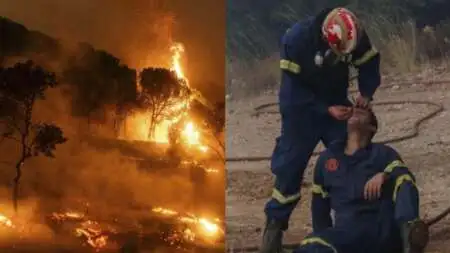 ΕλλάδαΣυγκλονιστικές εικόνες: Πυροσβέστης βοηθά συνάδελφό του μέσα στις φλόγες της Πάρνηθας